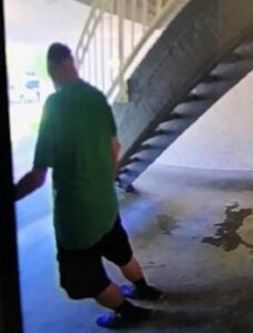 Mr. Michas was last seen wearing the clothing in the photo of him standing next to the stairwell: a loose green t-shirt, black shorts and possibly blue running shoes.