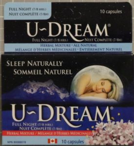 Health Canada is advising Canadians that it has tested several U-Dream Lite and U-Dream Full Night herbal sleep-aid products and has found that they contain a substance similar to the prescription drug zopiclone, which may pose serious health risks.