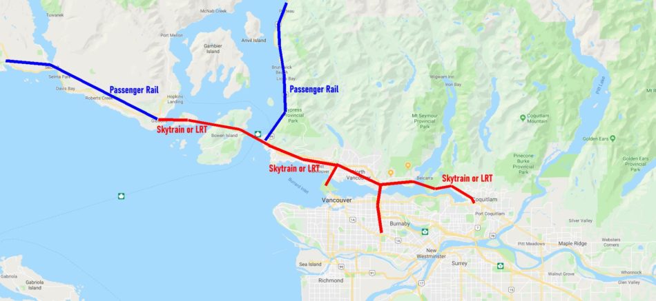 Imagine an LRT or Skytrain (Light Rail Transit) that goes from the Horseshoe Bay Ferry Terminal through to Dollarton, and maybe beyond to connect with the Evergreen Line in Port Moody. Imagine, passenger rail from Horseshoe Bay through to Pemberton. And imagine those networks going over both the Lions Gate and a new Second Narrows Bridge that would increase Highway 1 capacity, increased capacity serving the Port as well as our North Shore communities?